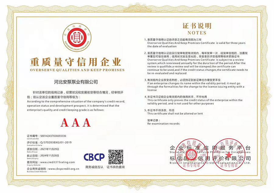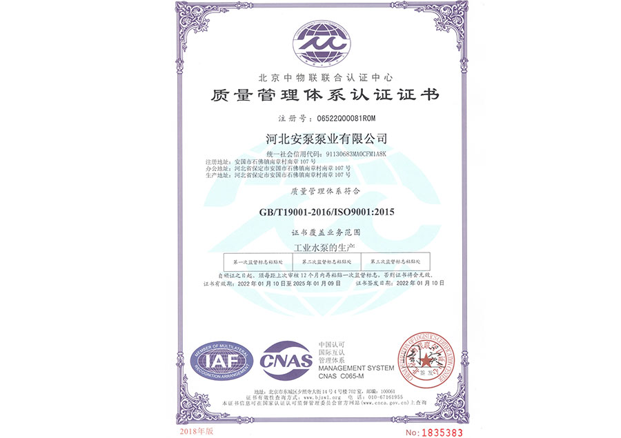 河北安泵泵業(yè)有限公司,經(jīng)濟(jì)實(shí)力雄厚,技術(shù)力量強(qiáng)大,目前本公司擁有生產(chǎn)檢測(cè)設(shè)備和一支高強(qiáng)的科研、生產(chǎn)、銷(xiāo)售及售后服務(wù)隊(duì)伍,年生產(chǎn)水泵達(dá)3萬(wàn)余臺(tái)。